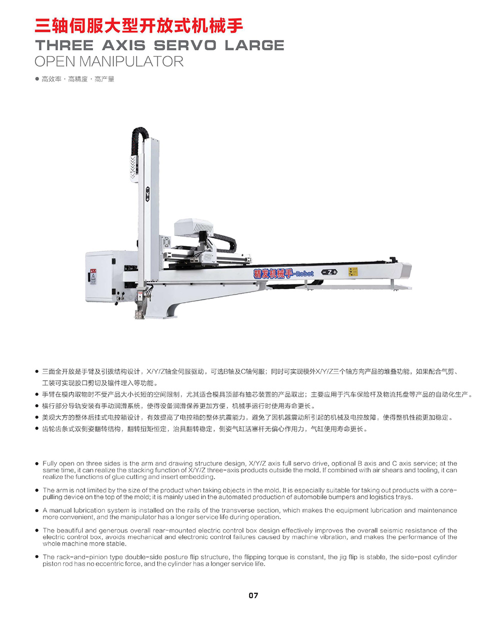 三軸伺服大型開(kāi)放式機(jī)械手